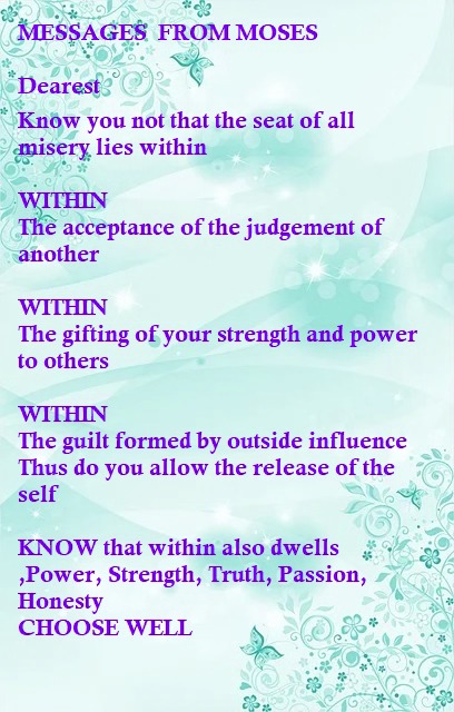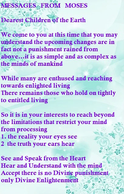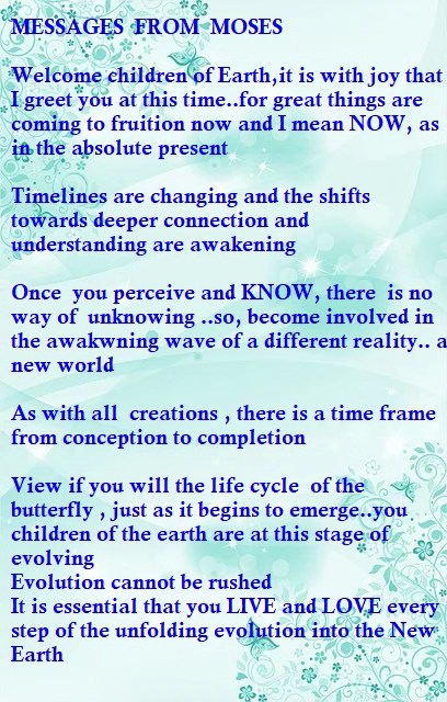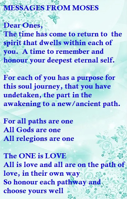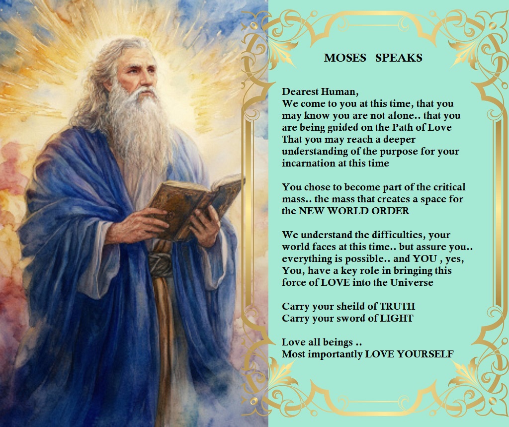 Here you will find channeled messages from Moses , the Magdalena, and many more The time has come for each of us to walk The Path of Love… not only for ourselves.. but to assist others and our planet to ascend into the New World